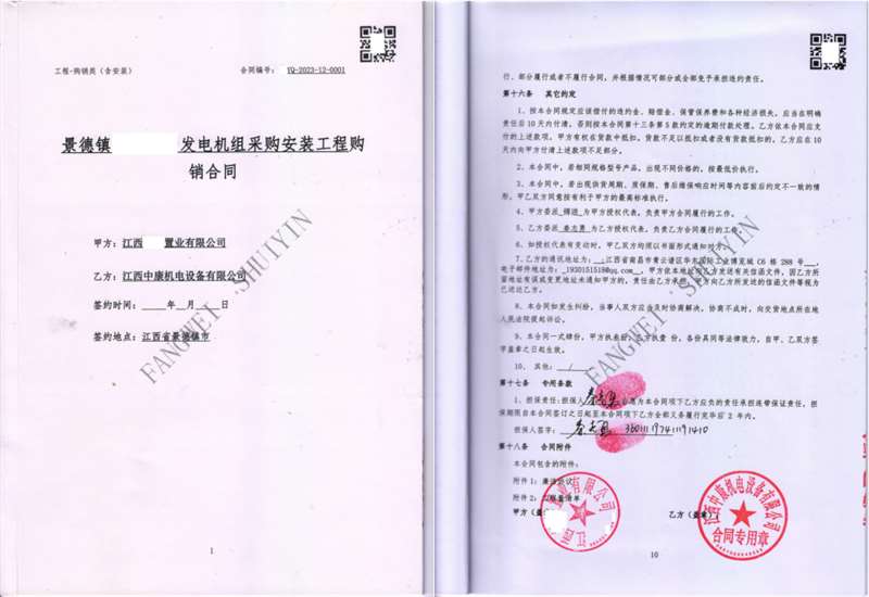 每一次选择皆因客户对我们的信任,江西一置业有限公司与我公司采购一台500KW上柴柴油发电机组用于景德镇一项目上的备用电源,该公司采购的该台上柴柴油发电机组用的是上柴股份柴油机,配套全铜无刷发电机组,众智6110控制器,我公司提供安装、调试、技术培训服务。感谢一路走来遇见的每一位客户。